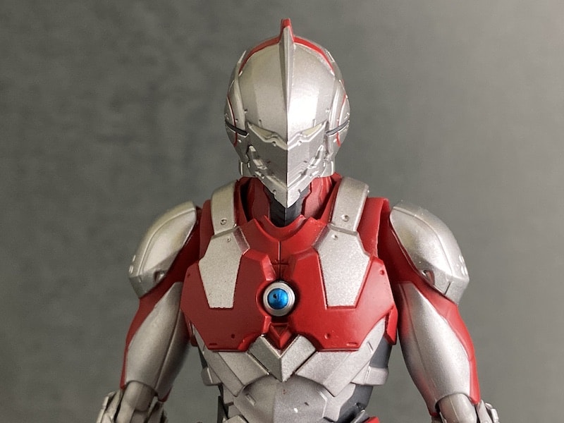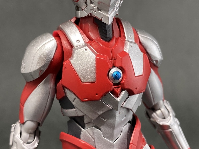 胸部のアップです。頭部と同じく塗り分けは正確です。私が購入したものはたまたまカラータイマーの塗装が剥げていました。辛い…