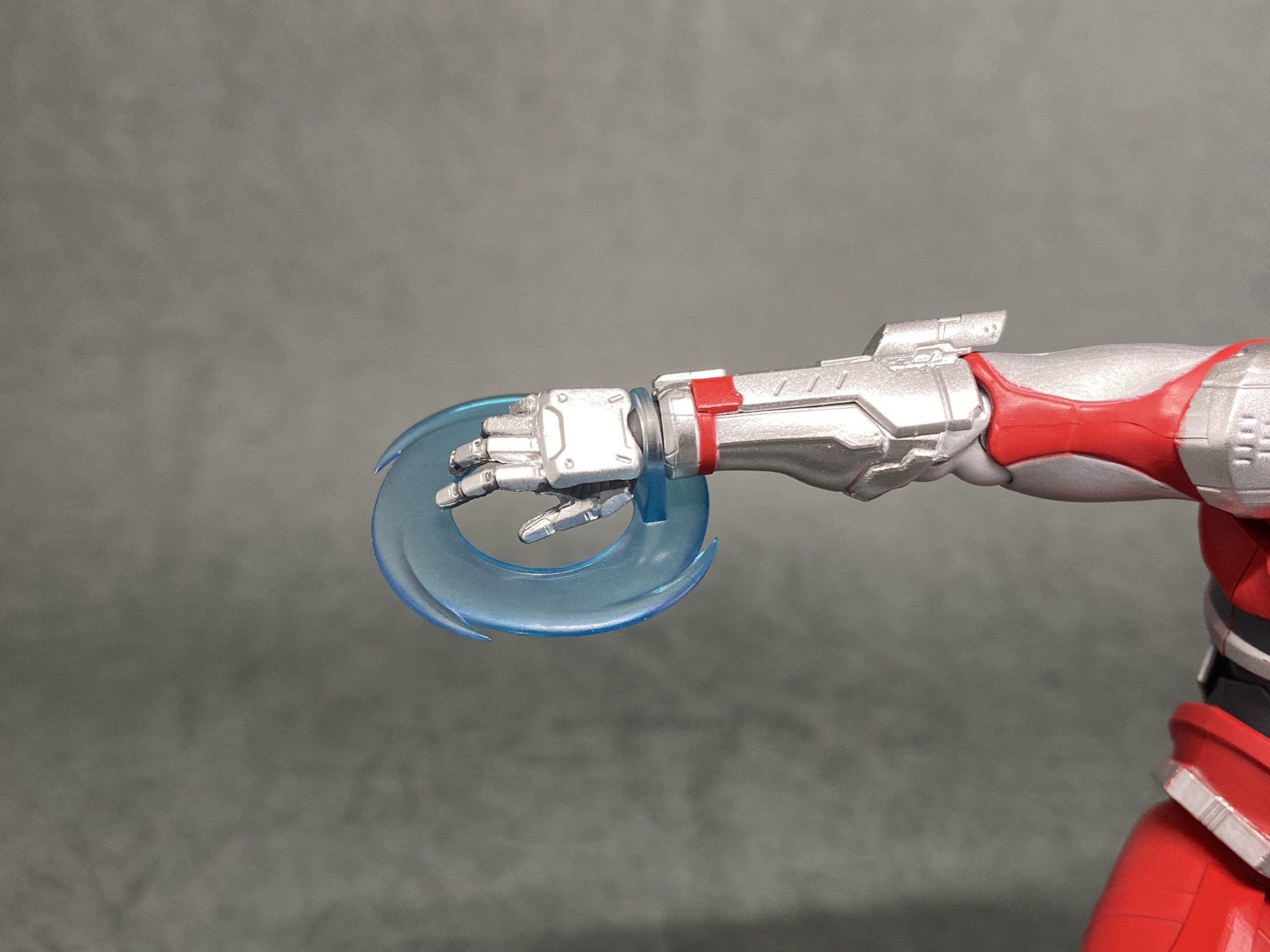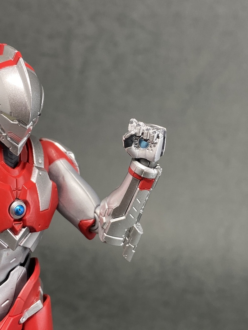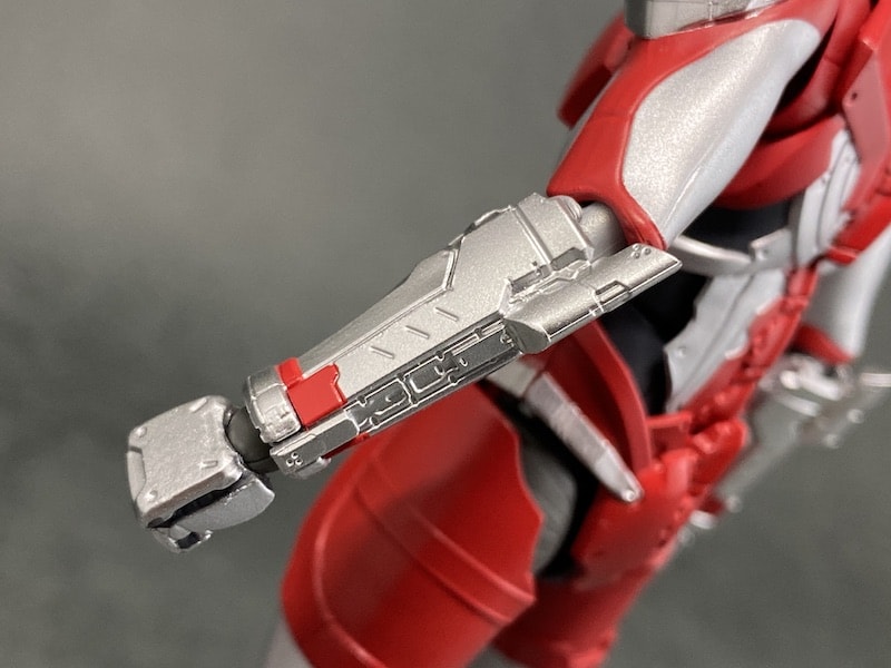 腕部のアップです。スペシウムブレードのユニット部分はモールドも細かく再現されています。手のひらには丸いモールドが。