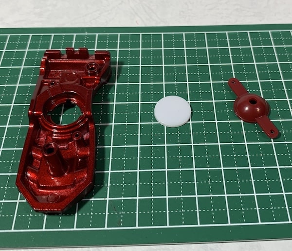 可動部分に円形のワッシャーの様なパーツ(本紙にはガスケットと記載)をかまして接続します。