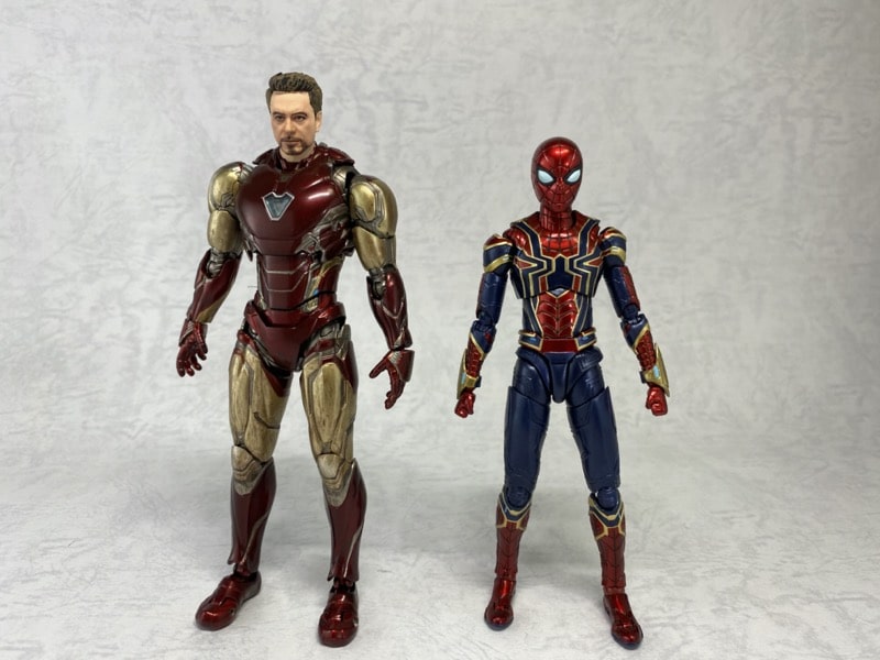 同じくフィギュアーツのスパイダーマン アップグレードスーツ(左)とMAFEX アイアンスパイダー(右)との比較です。