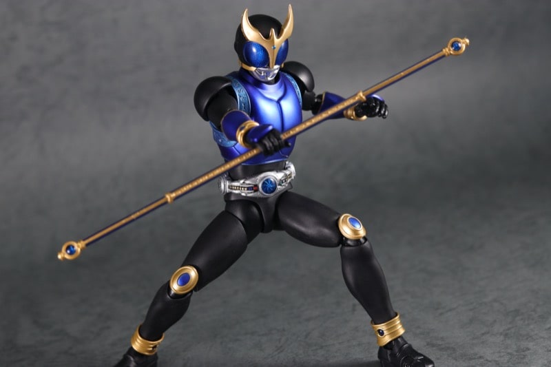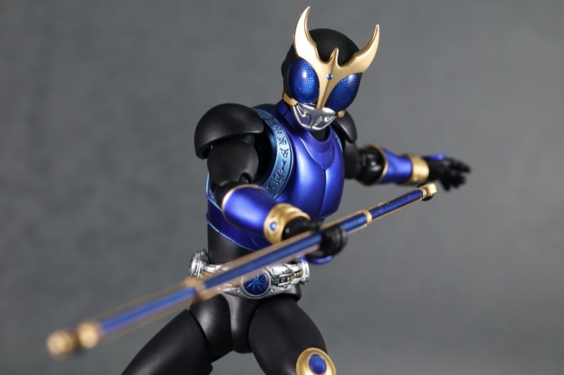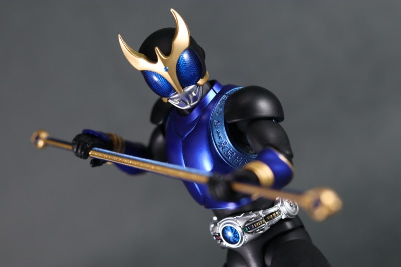 青のクウガ、ドラゴンフォームが使用する武器、ドラゴンロッドが付属。伸縮ギミックはありませんが、かなり細かく造形されています。