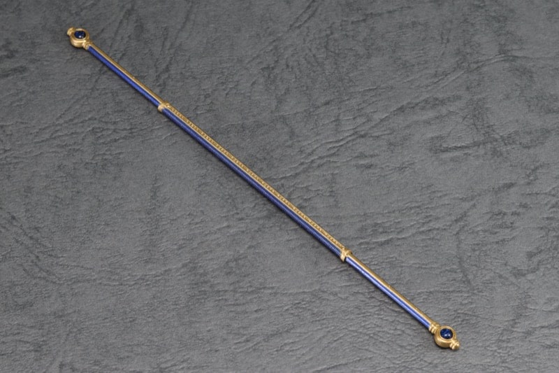 ロッドの先端の丸い部分はクリアパーツで、内部には古代文字が確認できます。持ち手部分にも古代文字が掘られていますが文字がつぶれているので桜子さんでも読み解くのは困難でしょう。