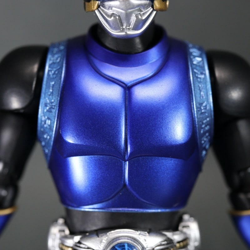 胸は胸筋のようなデザイン。変身ベルトアークルはドラゴンフォームに対応した青色のカラーに。造形が細かいですが塗り分けは正確。