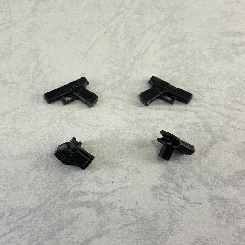 ホルスターパーツとハンドガンが付属。脚部に装備しているホルスターとハンドガンの一体型パーツと差し替えて使用。
