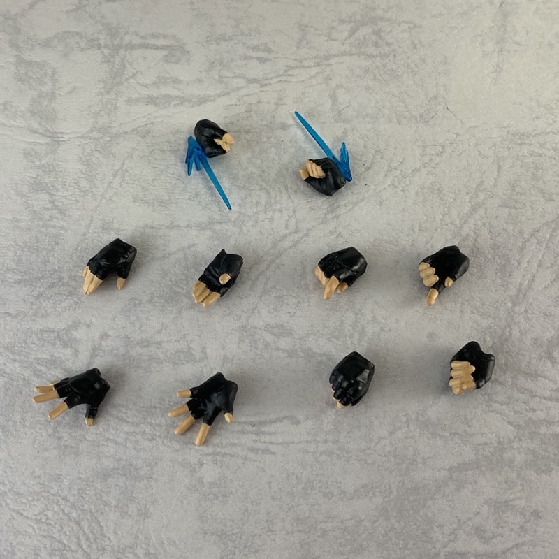 交換用手首は平手、大きく開いた手、武器用持ち手2種、エフェクト付きがそれぞれ左右5つずつ付属。