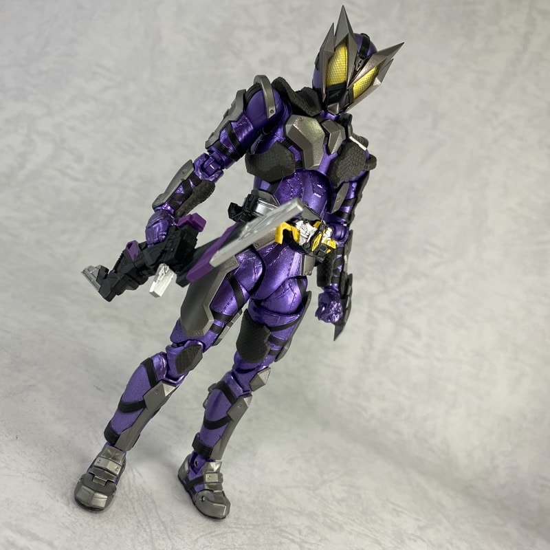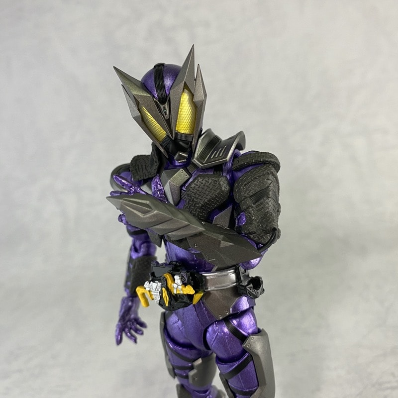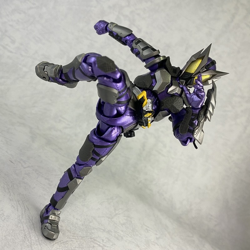 メタリックパープルのスーツと各部の装甲が高い再現度で造形・塗装されています。