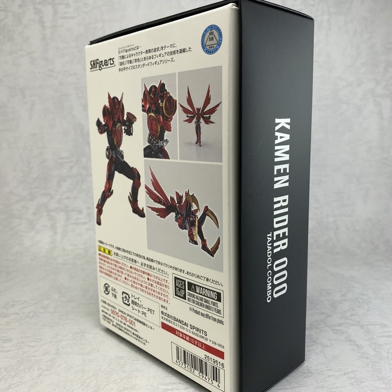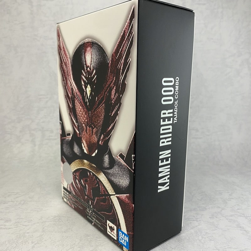 箱の側面には「KAMEN RIDER OOO TAJADOL COMBO」の文字が銀の箔押しで印刷されています。