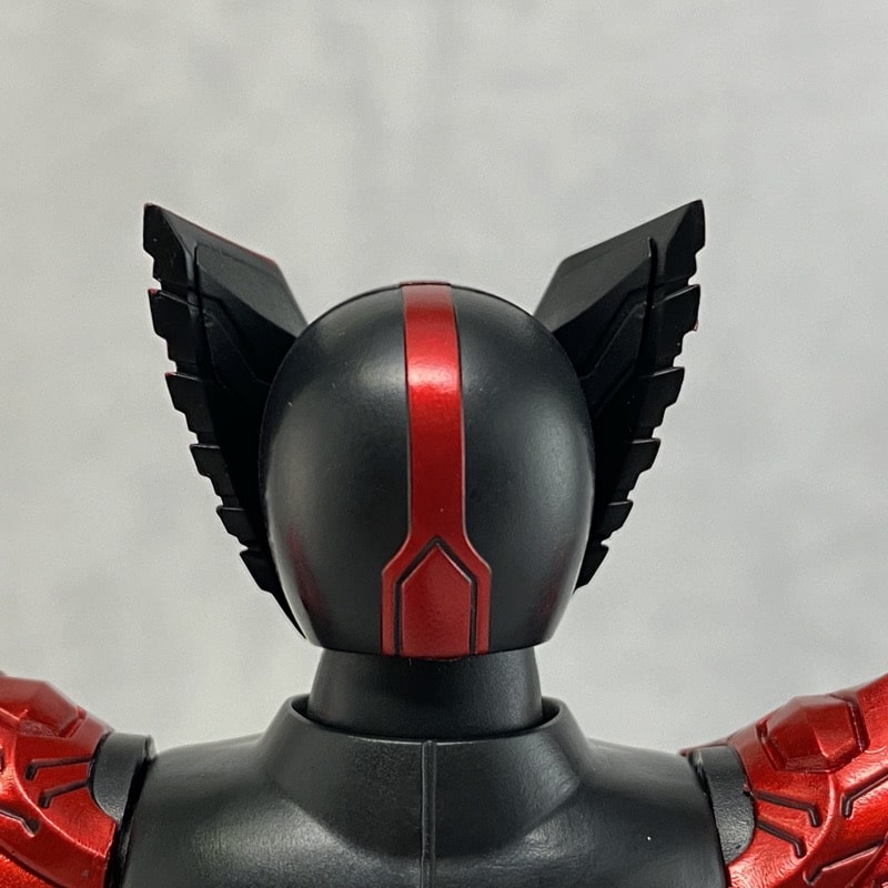 頭部のアップです。通常のタカヘッドからパワーアップしており、羽が左右に大きく伸び、フェイスシールドが追加されています。シャープな造形と丁寧な塗装で非常にかっこいい。