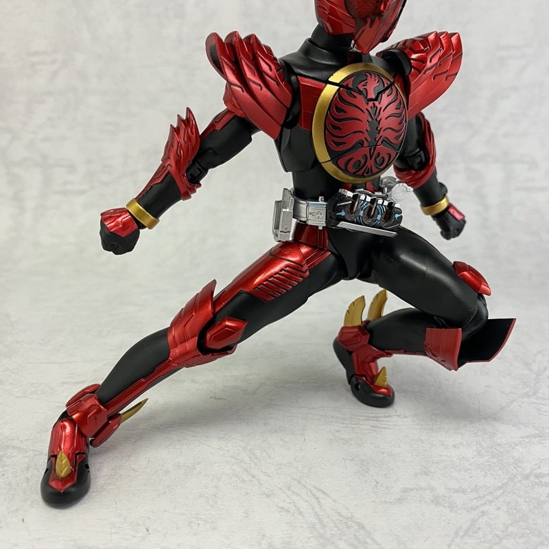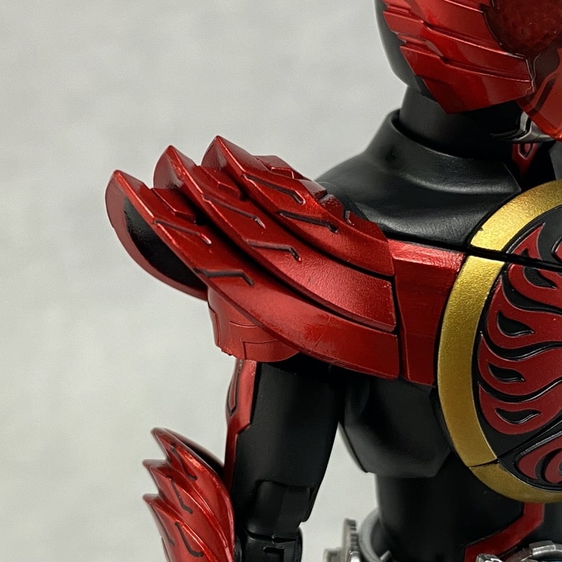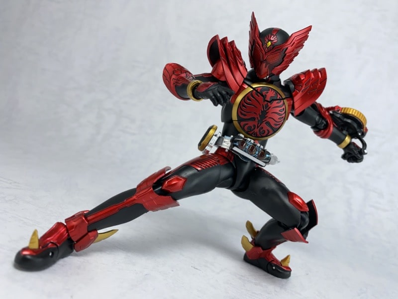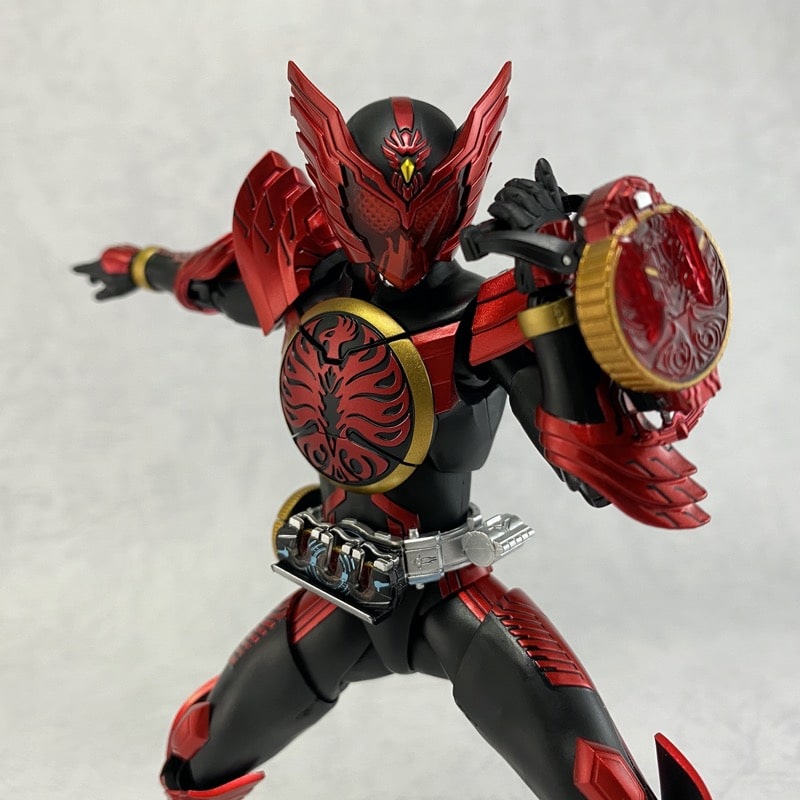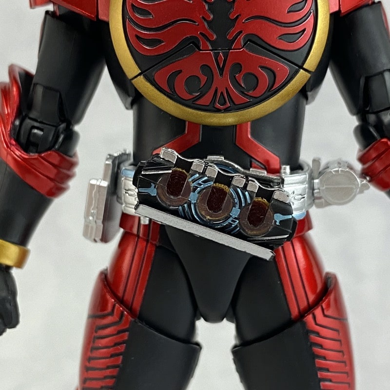 全身のスタイル。オーズ特有の黒のスーツをベースに、レッドのメタリック塗装が施されています。