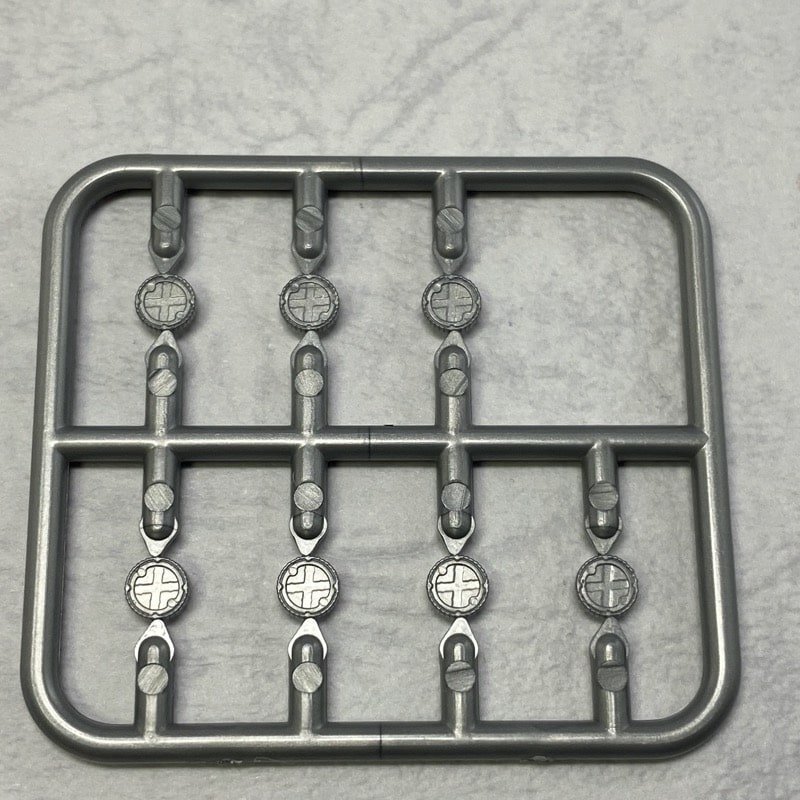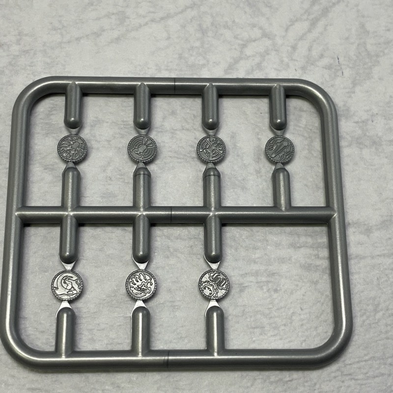 コアメダルはいつも通りランナーに付いた状態で付属。左からタカ・コア、クジャク・コア、コンドル・コア。