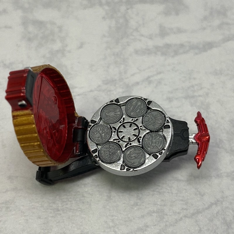 セルメダルを装填した状態。結構隙間ができるようになっているので、ハマって取れない、みたいな事にはならないですね。