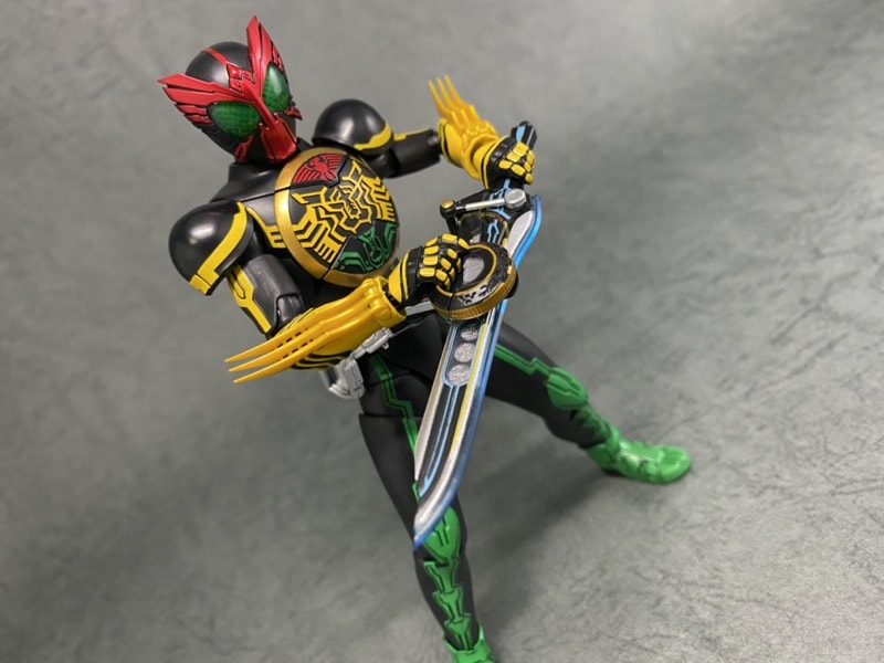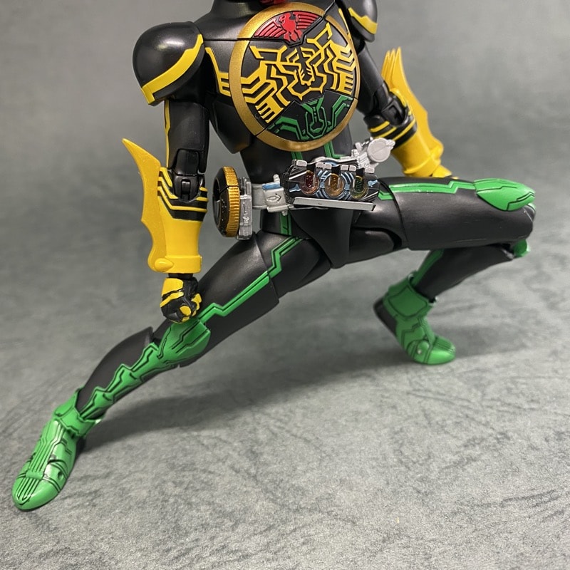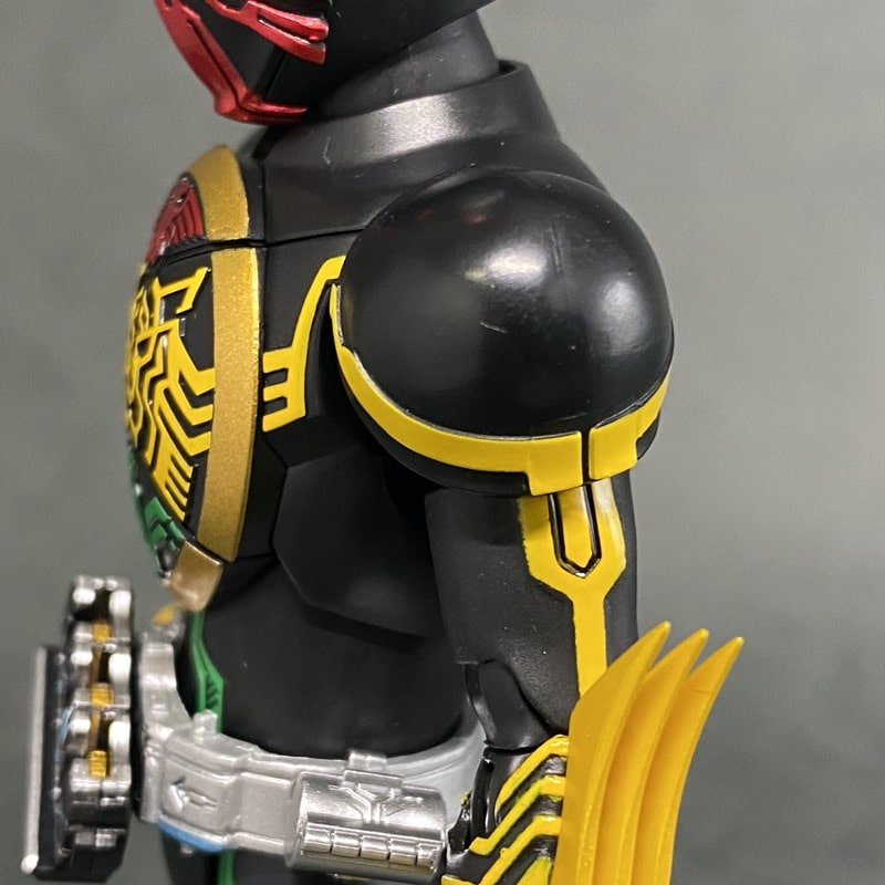 肘と膝には真骨彫オーズ特有の捻り可動構造が仕込まれています。