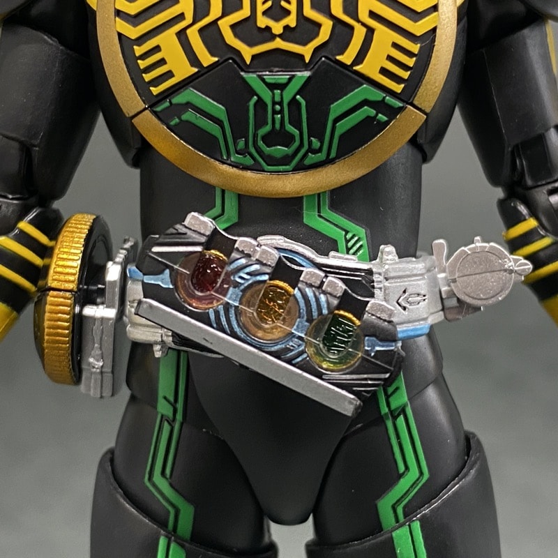 オーズドライバーのアップです。スロットにはコアメダルが3枚装填されています。