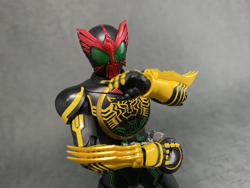 S.H.フィギュアーツ 真骨彫製法 仮面ライダーオーズ タトバコンボのレビューでした。体型や可動範囲だけでなく、捻りを表現するための新しい可動ギミックや絶妙な表情付けがなされた手首など、絶妙なポーズ取りに拘ったフィギュアとなっていました。