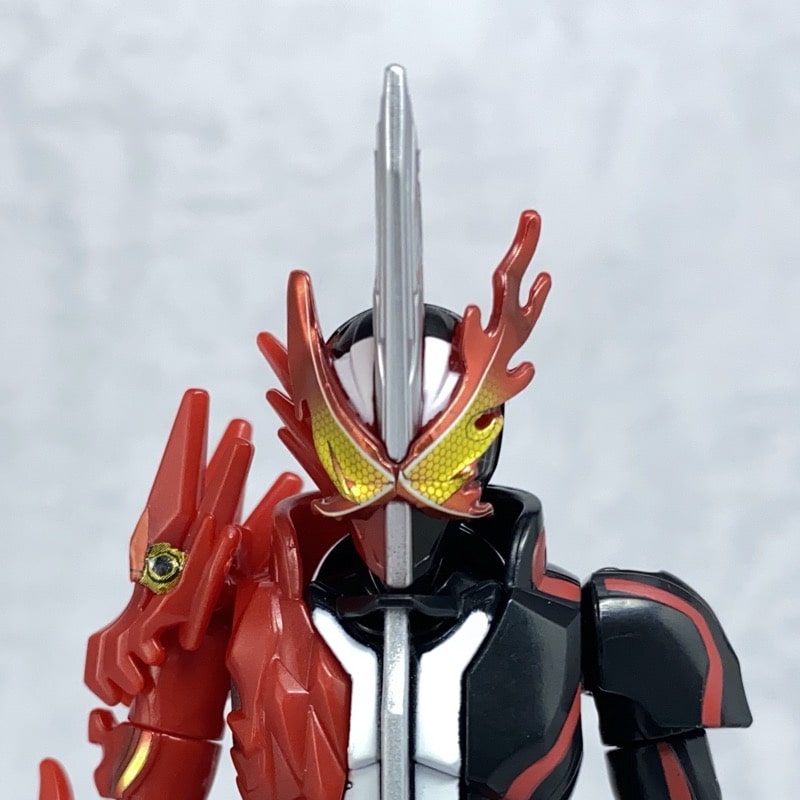 複眼と額から伸びている剣のカラーはシールで再現。