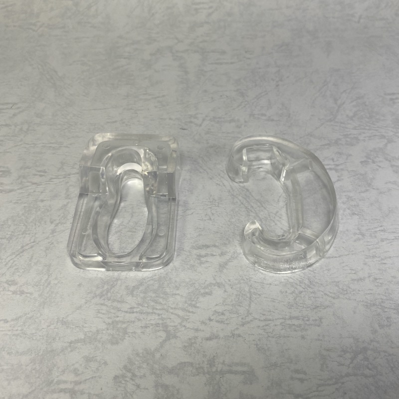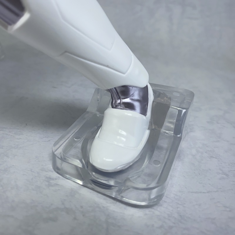 左右の足に取り付けるスタンドは透明な素材で形成。