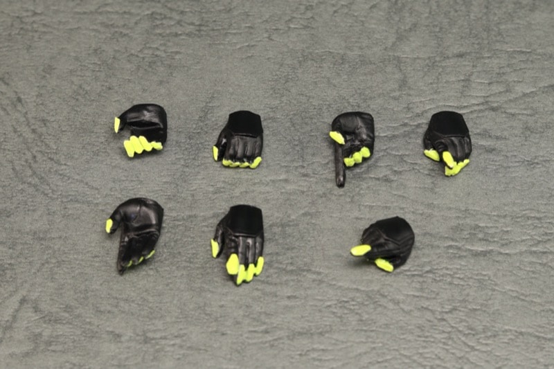 手首パーツは平手、人差し指を立てた平手、武器用持ち手が左右ずつ付属。それ以外に右手の指差し手首が付属しています。